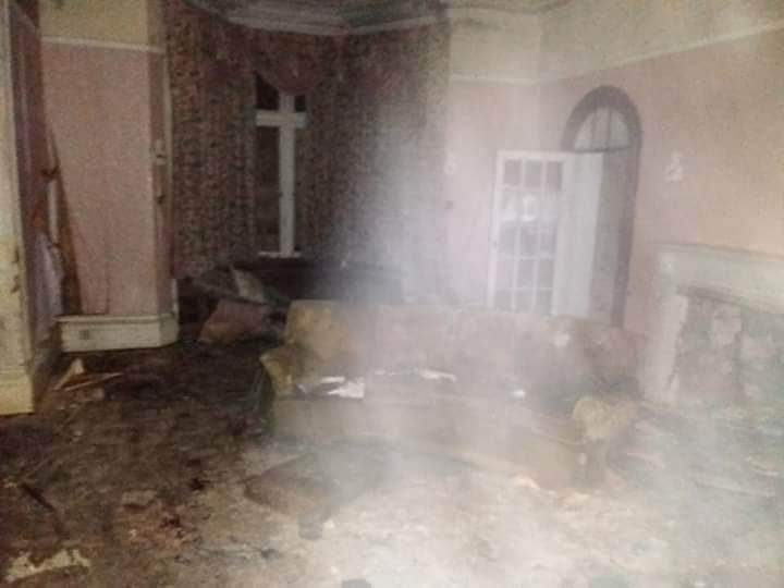 Myself & my friend went to explore an old manor house & was half way through the explore & we saw a strange mist going up the stairs, we couldn't explain it so we headed up the stairs, on the way up there was nothing on the wooden spindle at the bottom of the stairs but when we headed back down there was a small perfume bottle on the spindle & an old picture of the home owner & his wife, that again we couldn't explain, we then went into the front room & I carried on taking pictures, when I got home I checked my pictures & in the picture I saw a dog & a little girl morphed into the fireplace & then it was pointed out after there was a girl on the sofa to & you can clearly see that too, the mist in the picture though I cant explain as there was no visible mist at that time other than the one we saw go up the stairs & its not my breath as I hold it in when I take pictures.